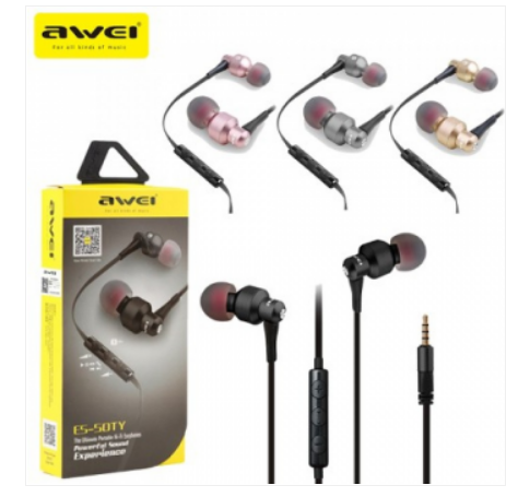 Наушники Awei ES-50TY, 1.2 м, 20 – 20000 Гц, черный